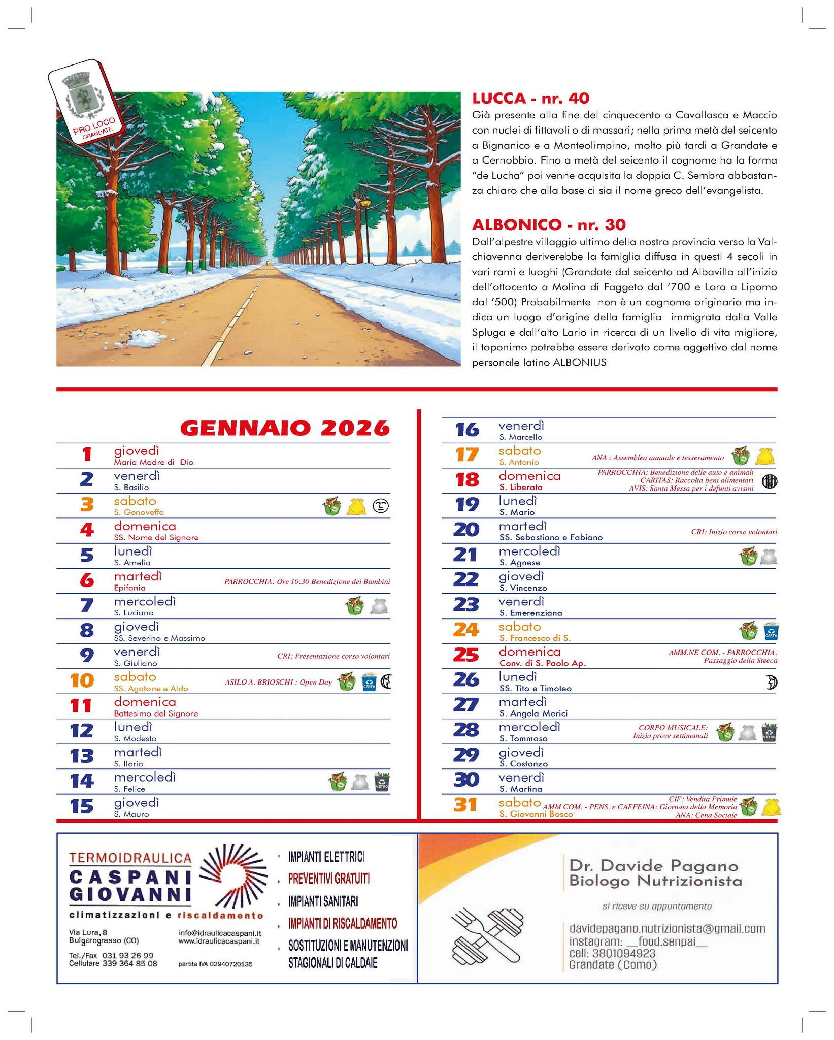 E’ IN DISTRIBUZIONE IL CALENDARIO PRO LOCO DEL 2026 !!!!